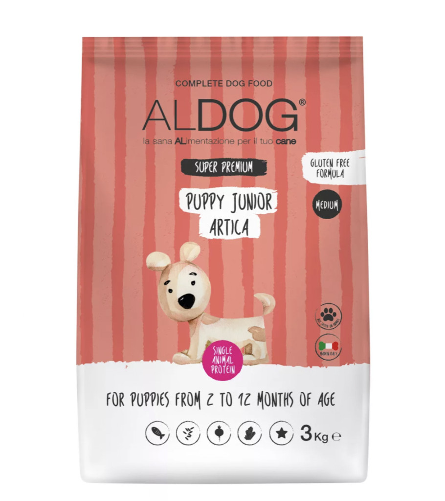 ARTICA HIPOALLERGÉN kutyatápunk prebiotikumokat (FOS) tartalmaz a bélflóra egyensúlyának támogatására; a kondoritin, a glükozamin és a metil-szulgonil-metán támogatják az izületeket és a porcot a növekedési fázisban. Az omega-3 és omega-6 zsírsavakban gazdag lenmagolaj és lazacolaj biztosítják továbbá a fényes és selymes szörzetet. A gluténmentes rizs, mint egyedüli szénhidrát használata hozzájárul a jobb emészthetőséghez.