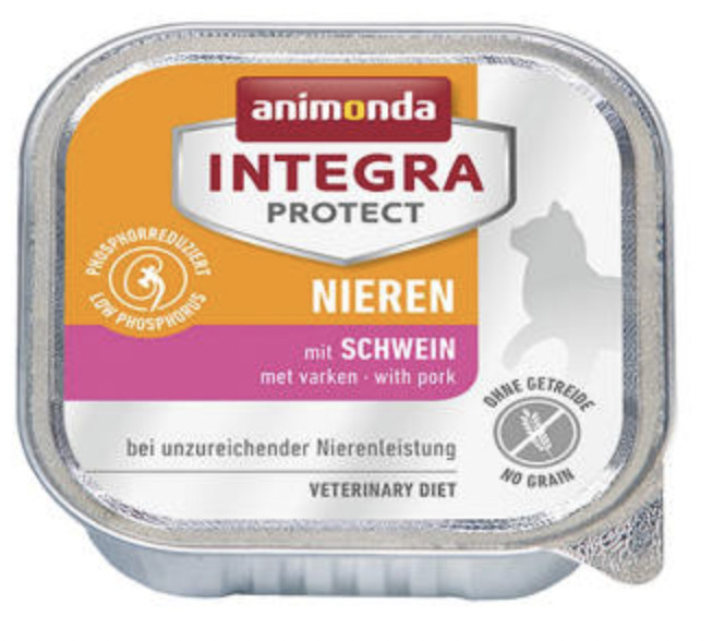 Az INTEGRA® PROTECT Nieren tápot kifejezetten krónikus veseelégtelenségben szenvedő macskák számára fejlesztették ki. A szignifikánsan alacsonyabb fehérjebevitel csökkenti a fehérjebomlástermékek mennyiségét. A foszfortartalom egyidejű csökkentése késlelteti a vesefunkció fokozatos csökkenését. Ez hosszú távon javítja a macska állapotát és meghosszabbítja a várható élettartamot.