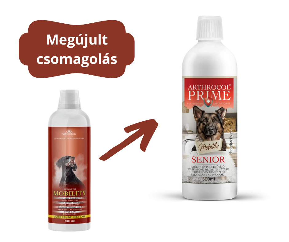 2022. novemberétől a készítménybe kivonat helyett por formában kerül az ördögcsáklya hatóanyaga. Adagolásnál a kutyáknál hatásosabb eredményhez, nálunk pedig precízebb gyártási- és pontosabb mérési folyamathoz vezet. Ez a fejlesztés a hatásfok növelése mellett színváltozással is jár. Az Arthrocol Mobility ízületvédő folyadéknak ezért egészen sötét lett a színe, amit a termékben újonnan alkalmazott alapanyag okoz.