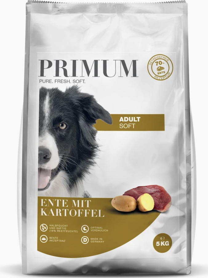 Kiegyensúlyozott és ízletes eledel felnőtt kutyák számára, ideális érzékeny emésztésű kutyák számára. A receptúra nagy arányban tartalmaz kiváló minőségű kacsahúst, amely természetes fehérjeforrás, és burgonyát, mint könnyen emészthető, gluténmentes köretet. Az eledel félig lágy állaga nemcsak ízletes, hanem fogbarát is, és minden méretű kutya számára megfelelő. 72% kacsahússal extra lédús 18% nedvességtartalommal kiváló emészthetőséggel kacsahús az egyetlen állati fehérjeforrás egészséges gyógynövényekkel gabonamentes 100%-ban Németországban készült összetevők: Friss kacsa (60%), szárított burgonya (16%), szárított kacsa (10%), burgonyafehérje (5%), szárított borsó, psylliummag, növényi fehérje hidrolizátum, cellulóz, szárított céklapép (szárított), kondroitin-szulfát, glükózamin, yucca, gyógynövények (többek között kamillavirág, fagyöngygygyökér, enciángyökér, csalán, szederlevél) Analitikai összetevők: Nyersfehérje 26%, nyerszsír 18%, nyersrost 2%, hamu 4,2%, nedvesség 18%, kalcium 0,65%, foszfor 0,55%