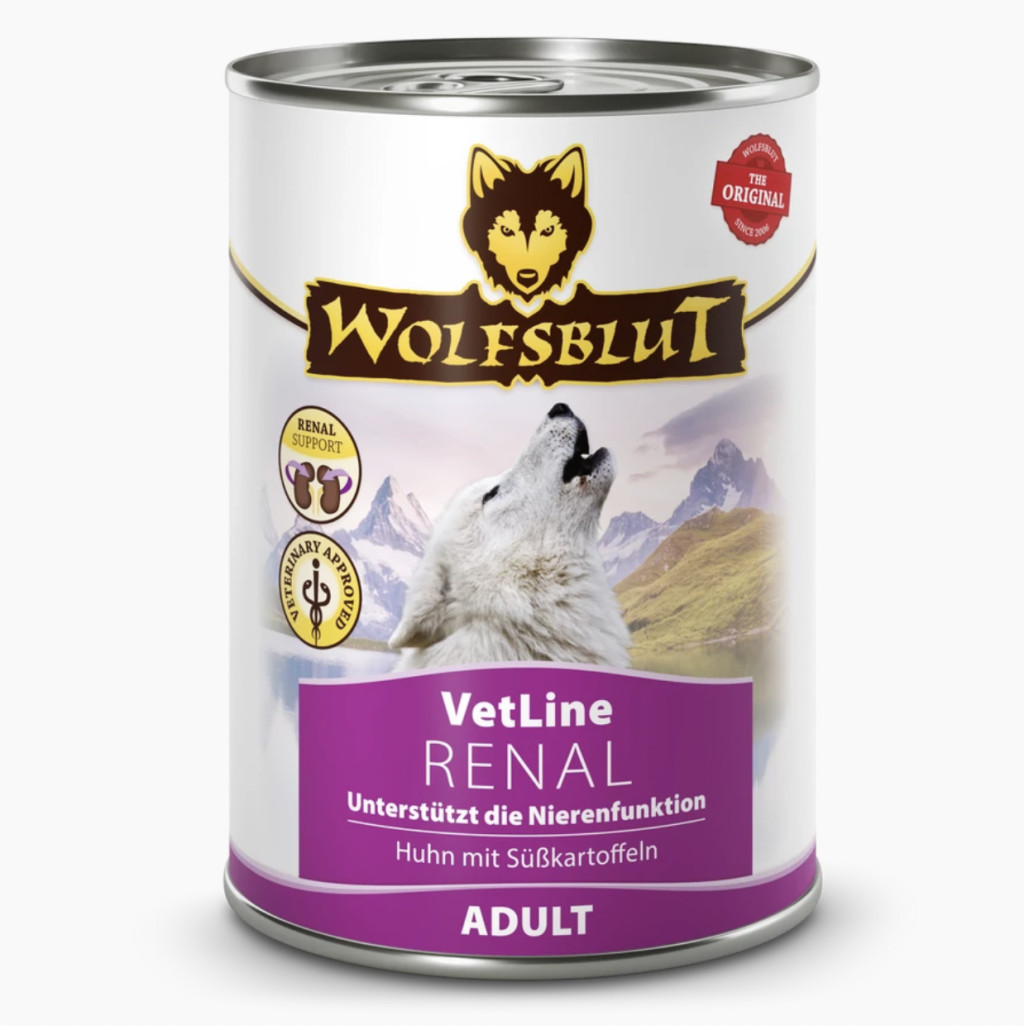 A Wolfsblut VetLine Renal támogatja veseproblémákkal küzdő kutyáját: 1. Csökkentett a fehérjetartalom, így az étel könnyebben emészthető és hasznosítható. Ez azt jelenti, hogy kevesebb bomlástermék keletkezik – és a veséknek már nincs annyi dolga. 2. A foszfor és a nátrium csökkentése segíti a szervek védelmét. Ha a felesleges foszfor már nem ürül ki, az további problémákhoz vezethet. 3. A megnövekedett omega-3 zsírsavtartalom csökkentheti a gyulladást, és így fenntarthatja a vese fennmaradó teljesítményét. 4. Lúgosító tulajdonságainak köszönhetően az élelmiszer megelőzheti az oxalátkövek (húgykövek) kialakulását. Ezeknek az ásványi anyagokat tartalmazó kristályoknak a felhalmozódását a savas vizelet segíti elő. 5. A könnyen emészthető csirkehúsból és édesburgonyából készült recept nemcsak állatbetegeinknek, hanem nekik is ízlik. És még jobb: minden beállítás ellenére a WOLFSBLUT VetLine RENAL megfelel az igényeknek. Kedvence mindent megkap, hogy fenntartsa a test tartalékait és az izmokat – mindkettő fontos előfeltétele az egészségnek és az egészség megőrzésének. A Wolfsblut VetLine Renal röviden: Különösen krónikus veseelégtelenségben szenvedő kutyák számára A csökkentett foszfor- és nátriumtartalomnak köszönhetően tehermentesíti a vesét A vesék tehermentesítése a beállított fehérjetartalom révén A szervezet támogatása esszenciális zsírsavakkal és prebiotikumokkal Az oxalátkövek megelőzése vagy csökkentése Magas elfogadottság még egyébként alacsony étvágy mellett is. Összetétel: csirke 62%, édesburgonya 5,5%, sütőtök 5%, napraforgóolaj 1,7%, repceolaj 1,7%, ásványi anyagok (0,1% kálium-citrátot tartalmaz*), lucerna, pitypang, csalán, csicsóka, mannan- oligoszacharidok (prebiotikus MOS), frukto-oligoszacharidok (prebiotikus FOS), metil-szulfonil-metán (MSM) 0,05%. Fehérjeforrások: csirke. Analitika Nyersfehérje 5%, nyers zsír 9%, nyershamu 1,8%, nyersrost 0,5%, kalcium 0,17%, foszfor 0,11%, kálium 0,35%, nátrium 0,11%, magnézium 0,02%, klorid 0,25%, kén 0,20%, omega- 6 zsírsav 0,70%, omega-3 zsírsavak 0,10%, D-vitamin 250 NE/kg, hidroxprolin 0,15%, nedvességtartalom 79%. Adalékok kg-onként Táplálkozási adalékok: A-vitamin (retinil-acetát formájában) 2500 NE, D3-vitamin (kolekalciferol formájában) 180 NE, E-vitamin (all-rac-alfa-tokoferil-acetát formájában) 25 mg, biotin 25 mg, cink (cink-oxid formájában) 20 mg , réz (mint réz(II)-szulfát, pentahidrát) 1,5 mg, jód (mint kalcium-jodát, vízmentes) 0,75 mg. *vizelet lúgosító.