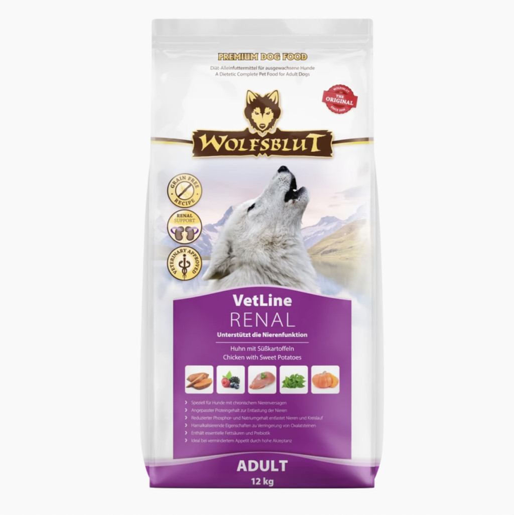 Wolfsblut VetLine RENAL – Teljes értékű diétás eledel felnőtt kutyák számára a veseműködés támogatására és az oxalátkövek kialakulásának csökkentésére A Wolfsblut VetLine RENAL kifejezetten krónikus vesebetegségben szenvedő kutyák számára készült. Friss és egészséges csirkehús az elsődleges összetevője, amely könnyen emészthető és kiváló minőségű fehérjeforrás. Az adaptált fehérjetartalom csökkenti a bomlástermékeket, például a karbamidot, ezáltal tehermentesíti a veséket. A csökkentett foszfor- és nátriumtartalom elősegíti a vesék és a vérkeringés optimális működését. A vese egészségéért Az alacsony kalcium-, D-vitamin- és purinszint csökkenti az oxalátkövek kialakulásának kockázatát. Fontos esszenciális zsírsavakat tartalmaz, amelyek segítenek csökkenteni a gyulladásos folyamatokat és támogatják a veseműködést. Szuperélelmiszereket tartalmaz, mint például a szeder, málna és áfonya, amelyek természetes antioxidáns források. Mentes minden felesleges adaléktól A recept NEM tartalmaz gabonát, kukoricát, glutént, szóját, ízfokozókat vagy mesterséges adalékanyagokat (kivéve vitaminok és ásványi anyagok). Összetétel: édesburgonya 58%, csirke 21% (friss 14%, szárított 7%), borsófehérje, sütőtök 4%, csirkezsír 3%, halolaj, csirkehúsleves 2%, alga (DHA-ban gazdag*), ásványi anyagok, lucerna, kálium-citrát (vizeletlúgosító), csalán 0,18%, gyermekláncfű, áfonya, szeder 0,09%, málna 0,09%, áfonya 0,09%, fekete ribizli, bodza, szeder, mannán oligoszacharidok (prebiotikum), fruktooligoszacharidok (prebiotikum) 0,1%. Proteinforrások: csirke, borsófehérje, sütőtök. Analitikai összetevők: fehérje 18%, zsír 8%, hamu 7%, rost 3%, omega-6 zsírsavak 1,8%, omega-3 zsírsavak 0,4%, linolsav 1,8%, DHA*/EPA** 0,15%, hidroxiprolin 1,8%, D-vitamin 980 NE, kalcium 0,7%, foszfor 0,4%, foszfor 0,4%, kálium 1,4%, nátrium 0,3%, kén 0,15%, magnézium 0,1%, klorid 0,6%. A Wolfsblut VetLine RENAL állatorvosokkal közösen kifejlesztett receptúrája biztosítja a holisztikus táplálkozás alapelveinek megfelelő összetételt, amely támogatja a krónikus veseelégtelenséggel küzdő kutyák egészségét. *Dokohexaénsav **Eikozapentaénsav